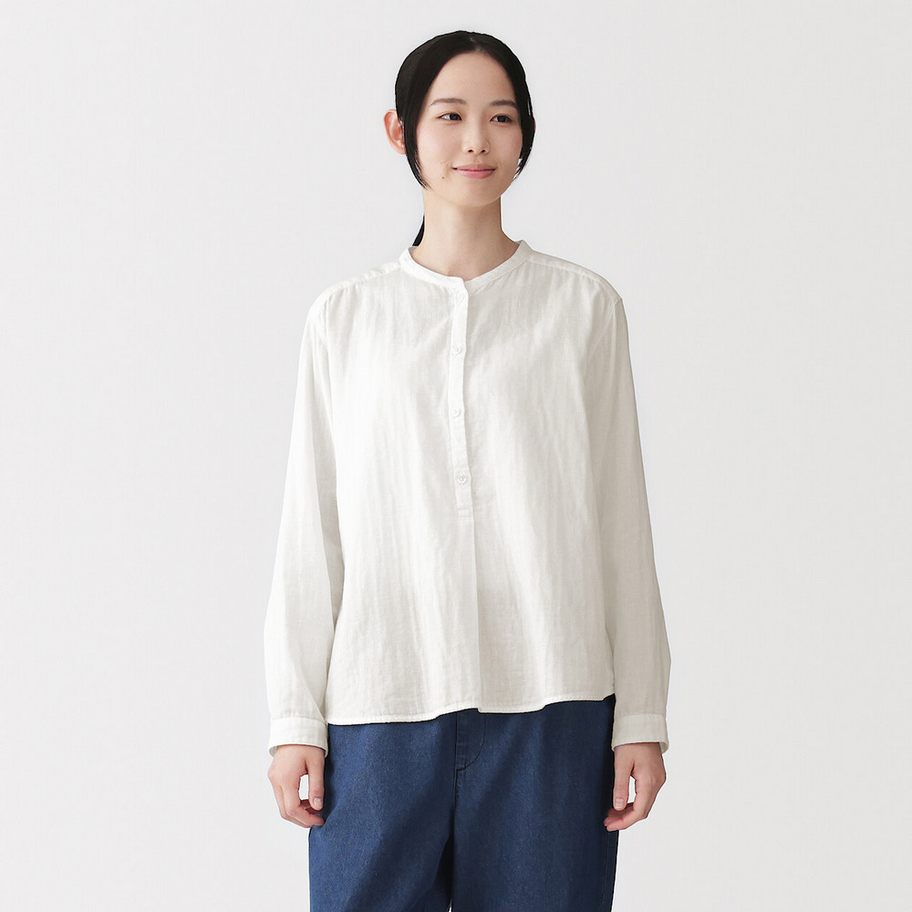 女吉貝木棉混二重紗織長袖套衫淺黃